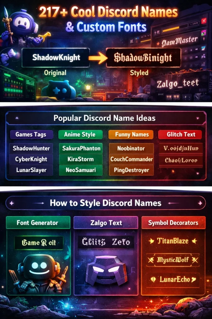 Stylized Discord names improve identity, branding, and recognition within gaming communities. Unicode fonts, decorative symbols, and glitch effects allow users to transform ordinary usernames into distinctive gamer tags.